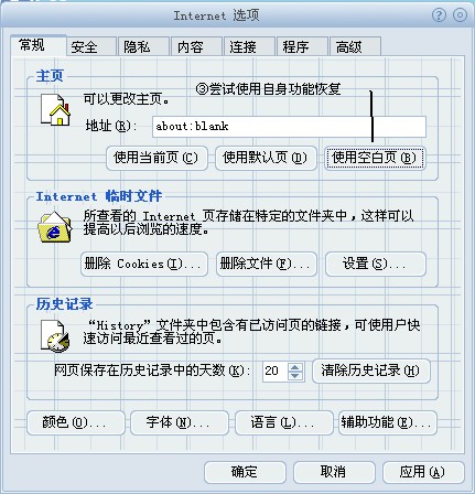 然后尝试使用系统的修改办法。。Temporary Internet Files文件夹是上网使用的临时文件夹,所以一些使用过的临时文件夹都储存在这里,而且在连上网络时是有的些应用程序因为调用这里的文件,所以删除时都显示正在使用,也因为此原因,所以被篡改后的IE无法被即时修复,有的就算修复了,也会被改回去的。它的路径为:C:\Documents and Settings\Administrator\Local Settings\Temporary Internet Files[注意:我的默认登入用户就是Administrator所以路径是这样的,而你的路径则以你的默认登入用户为准。