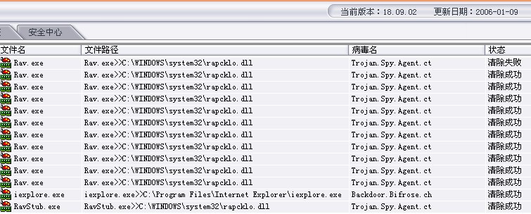 手动杀毒后的日志: