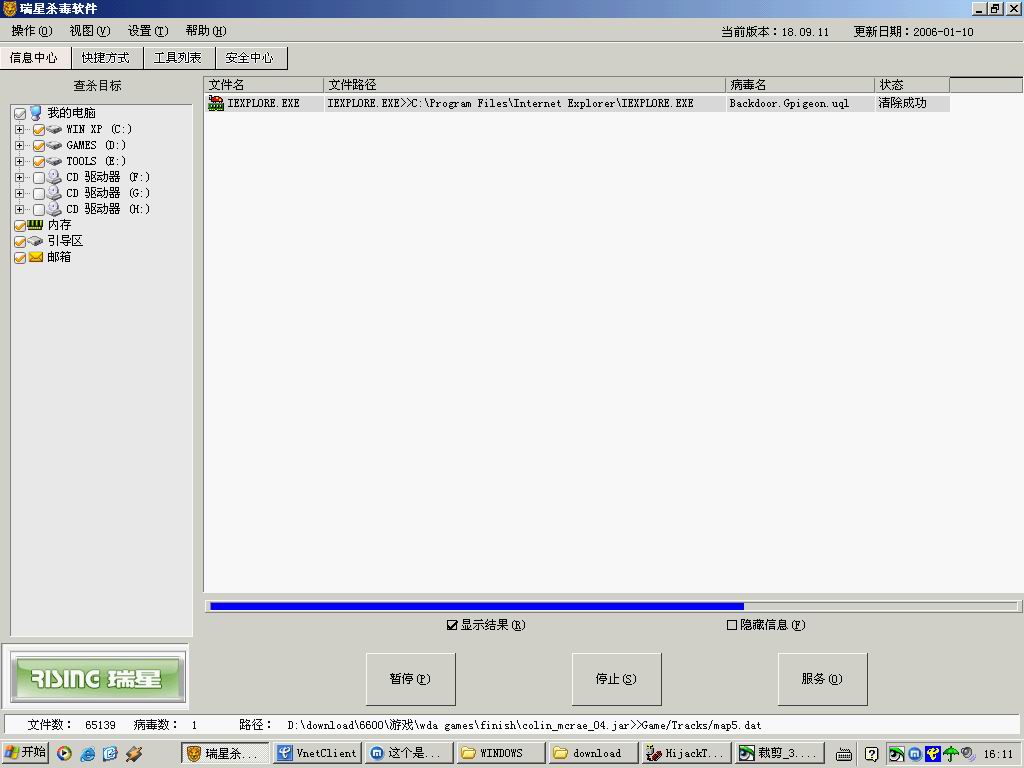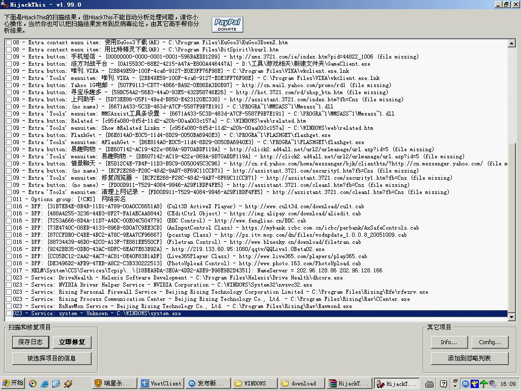 1.开始-运行输入regedit,打开注册表编辑器,定位到HKEY_LOCAL_MACHINE\ SYSTEM \ CURRENTCONTROLSET \ SERVICES分支,删除左栏中的病毒服务名[system]