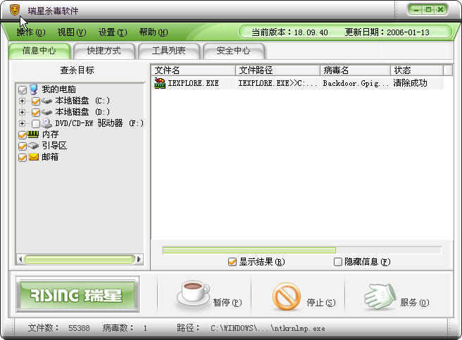 我每次杀毒时都会有以下那个病毒出现,瑞星每次都说(清除成功),但次次都有出现,为什么啊???