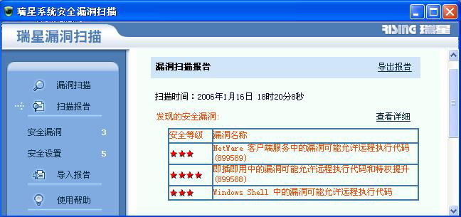 版主请看,瑞星的漏洞扫描怎么和微软的官方扫描结果不一样,瑞星的漏洞扫描告诉我有三个漏洞,但微软的官方扫描为可用安全更新已全部使用。