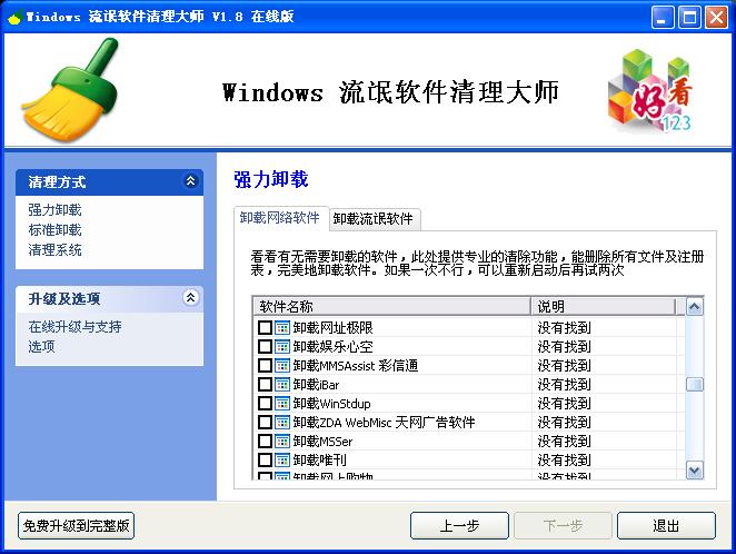 Windows 流氓软件清理大师现在可清除80种软件,如下: