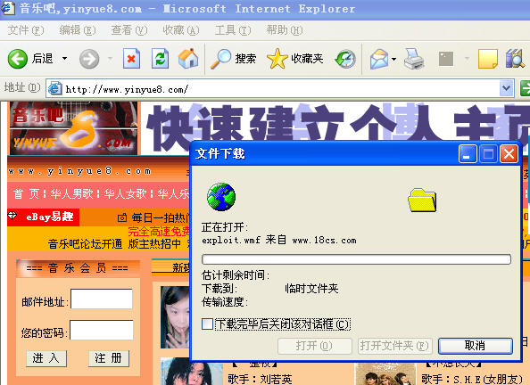 我的系统该打的补丁可全都打上了。你的IE怎么回事?下载时不提示,打开这个网页时直接就下载了吗?
