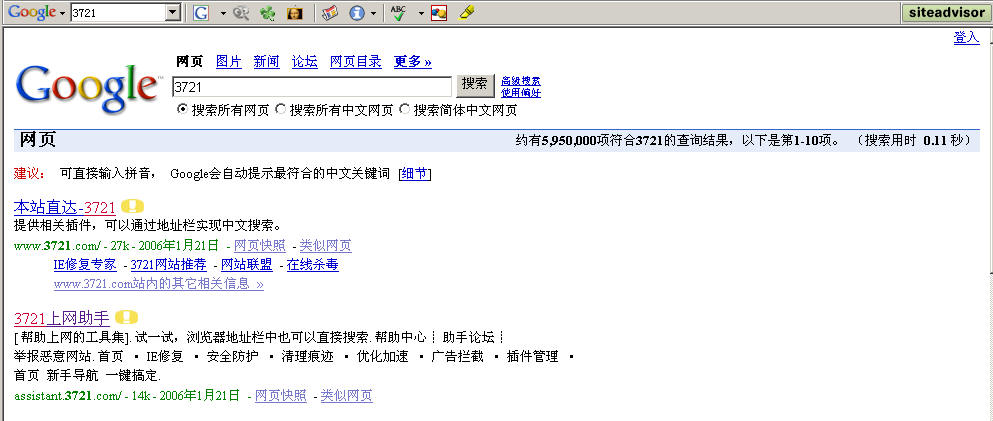 http://www.siteadvisor.com/preview/非常有用的 Firefox 和 IE 安全插件,可以通过SiteAdvisor每天大量增加的测试数据库检查各种网站和下载连接是否安全,支持对GOOGLE YAHOO 百度等搜索引擎的搜索结果连接进行安全测试,附SiteAdvisor 对于3721(上网助手,黄色警告),和180Solutions(间谍软件,红色警告)的测试图。。