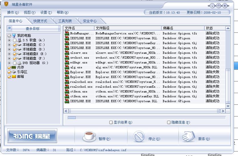 瑞星卡卡安全论坛技术交流区反病毒/反流氓软件论坛 救命啊1~!这个灰鸽子根本就杀不了!