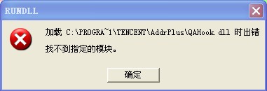 RUNDLL:加载C:\PROGRA~1\TENCENT\AddrPlus\QAHook.dll时出错