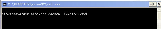 c:\windows>dir c:\*.doc/a/b/s 1>>c:\ww.txt