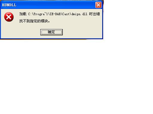 电脑启动时会报错:“加载C:\Progra~1\IE-BAR\Cast\dmipn.dll时出错 找不到指定的模块。(如下图)不知这个问题怎么解决?请高手指点!谢谢