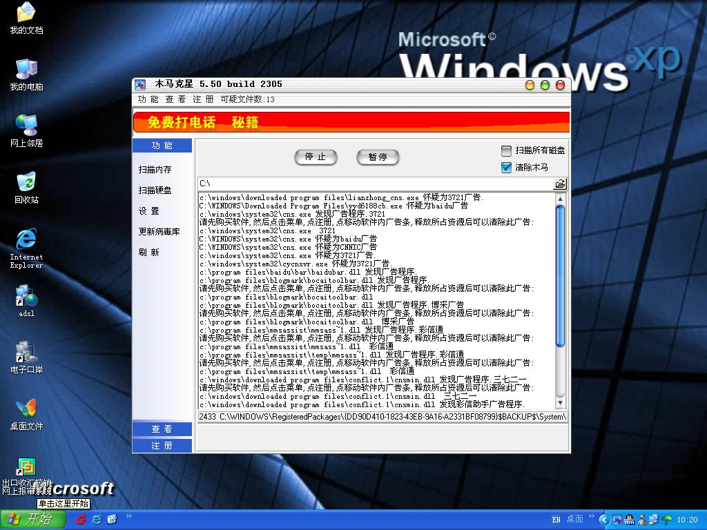 求救!我用木马克星查出来这么多广告木马,但清楚不了,应该怎么办?