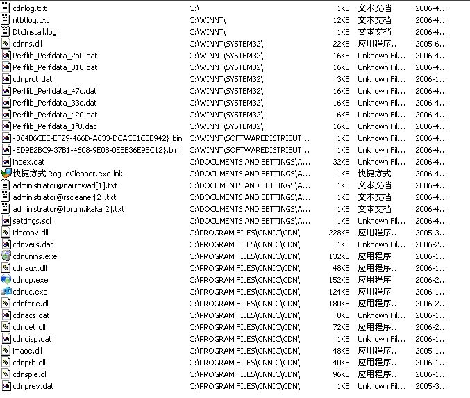 罪恶的CNNIC,每次开机,总是在后台运行,硬盘狂响5分钟,用尽各种办法,它总是自我复制,后台运行,怎么也禁止不了,请看,开机后自我安装的文件,如下图。