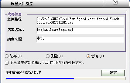 我安装了极品飞车9这个游戏,经过瑞星扫描后发现“Trojan.StartPage.ayj”这个病毒。杀完病毒后游戏也不能玩了。这如何解决?