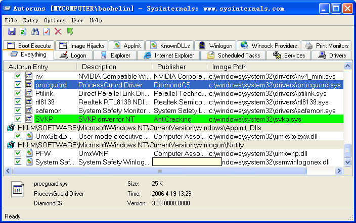 用Autoruns能看见,那就好搞一点。