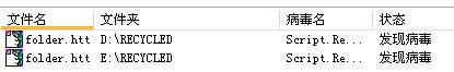 每次用瑞星扫都会出现两个一样的病毒并都在D E两盘里,文件名为folder.htt 这不是超文本模板吗?文件夹D:RECYCLED与E:RECYCLED 病毒名只显示了一半Script Re... 高手过来帮帮忙啊 RAVRETRY 是什么???