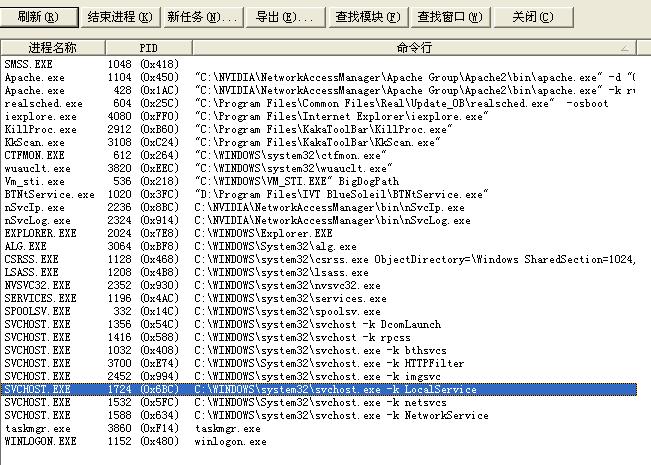 进程里有8个svchost.exe  晕死  以前最多4个