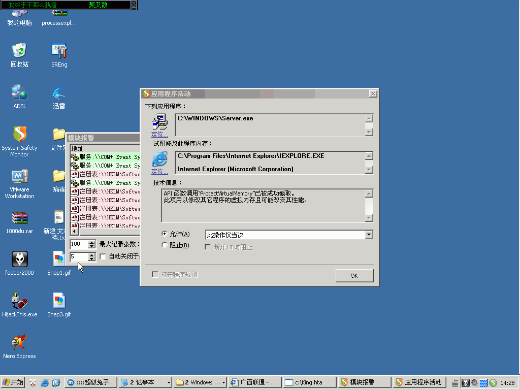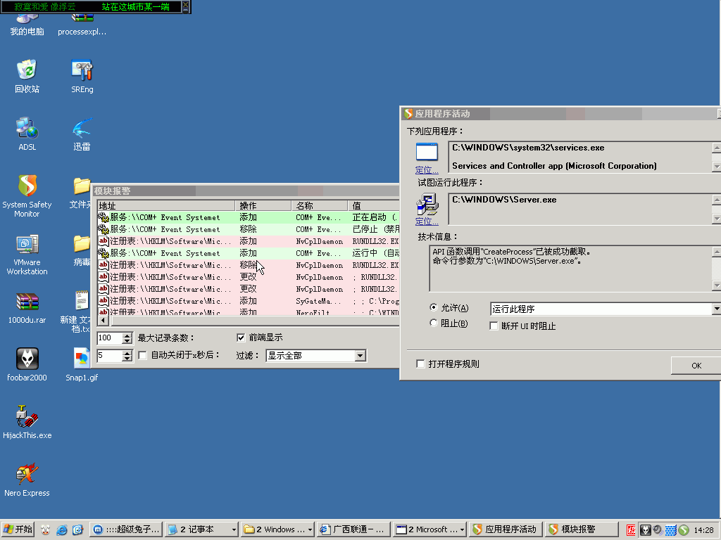 然后,报有个叫Server的程序要插入进程,我就一次次的让它运行