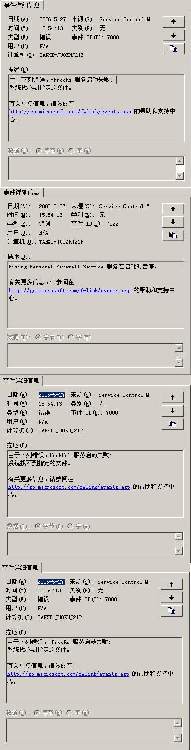 升级到18.27后.在系统启动的时候提示有服务为能启动.在事件查看器里发现有以下几个服务在启动的时候出现错误.