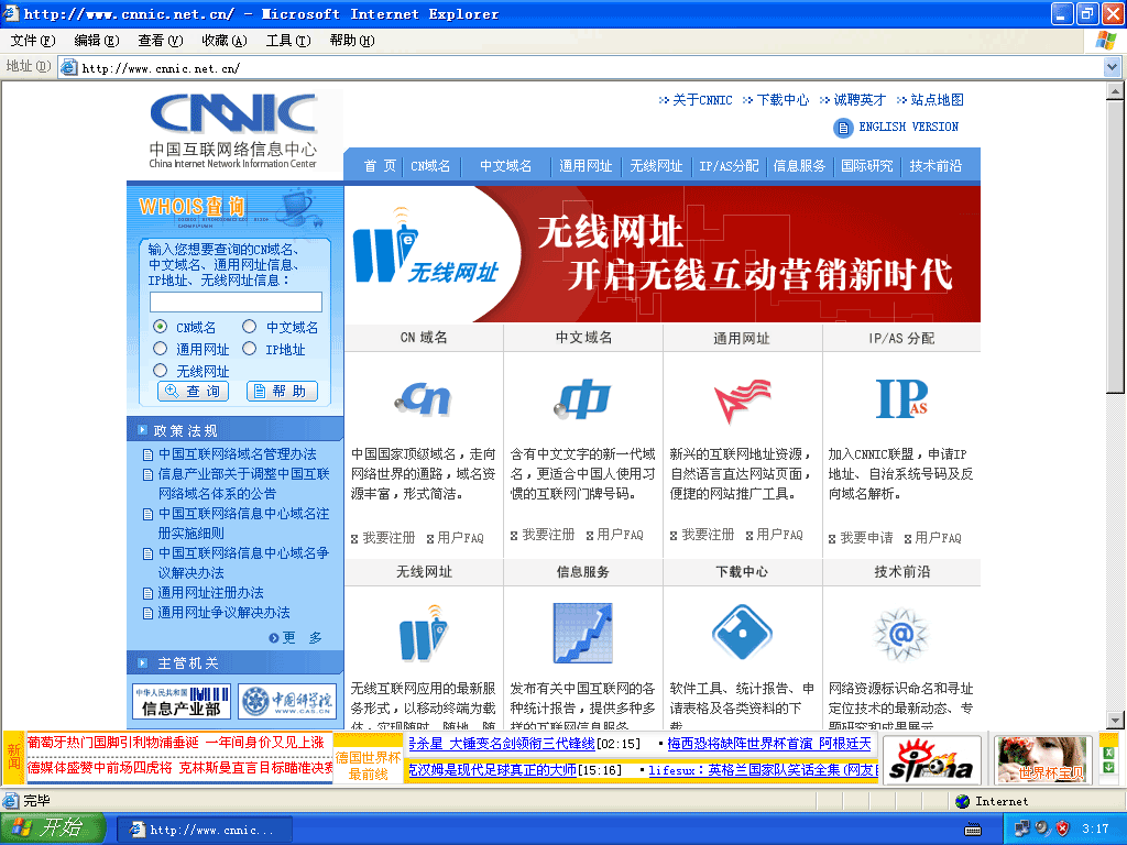通过中国互联网中心(www cnnic.net.cn)进行查询