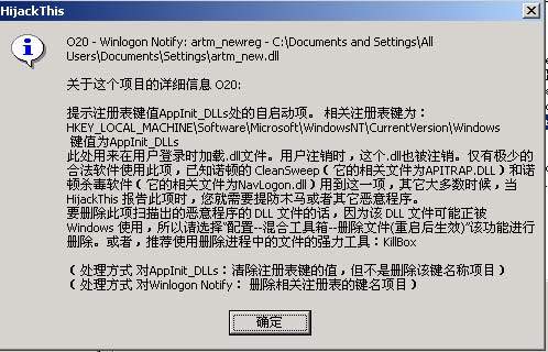以下是重起机子后的日志,以及Hijackthis对artm_new.dll解释的截图