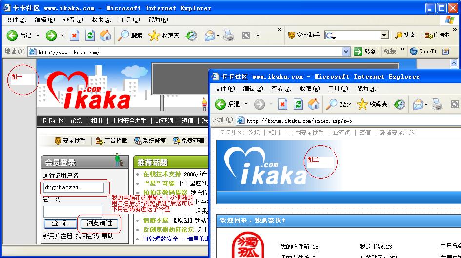 我的电脑在进卡卡社区的时候,居然可以不输入密码就可以进坛子.