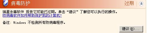 安全中心显示的是瑞星过期?