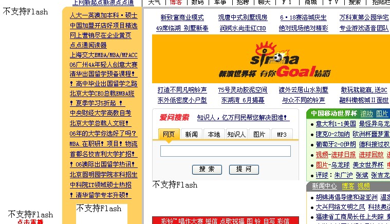 怕你们不理解我说的,截个图看看,中间黄颜色的世界杯广告是FLASH,正常显示