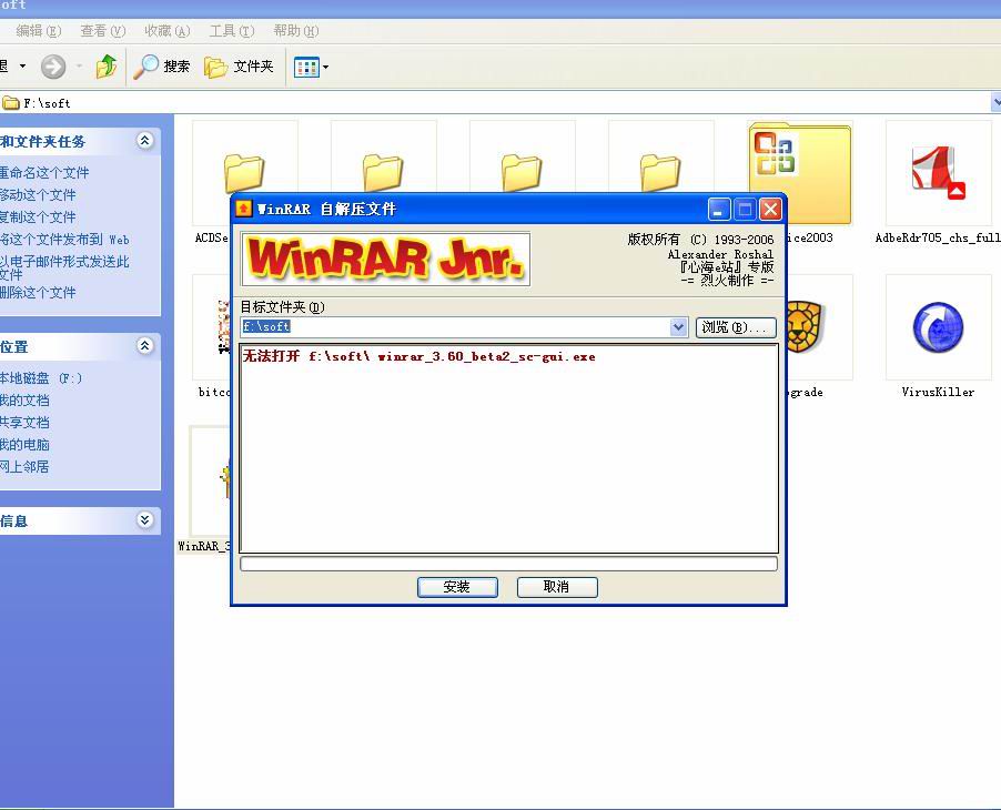 2..程序不能安装,老是提示错误,但复制到别的盘符下面就可以使用,真怪! 图2