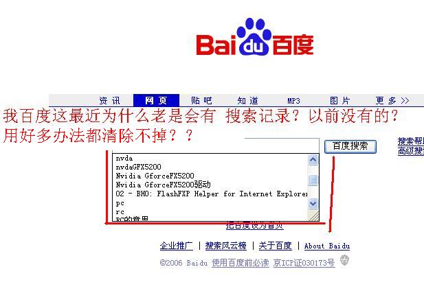 我百度这最近为什么老是会有 搜索记录?以前没有的?用好多办法都清除不掉??