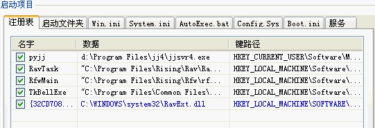 所有的启动项目(包括注册表、启动文件夹、服务等)