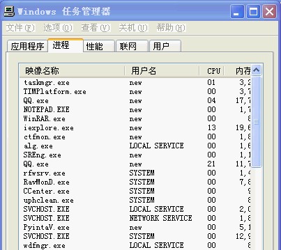 这是我ALT+CTRL+DELETE调出任务管理器的内容(上半部分):
