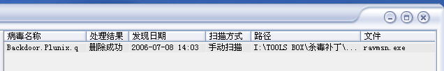 我今天手动查杀病毒!报告发现称ravmsn.exe是病毒!咋回事呀!难道瑞星的专杀软件里隐藏后门程序吗!不解!!!