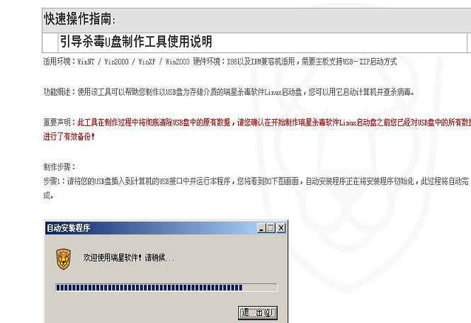 如果你是正版的瑞星用户,那么到下载中心去下载真正的U盘杀毒工具,不用光盘.