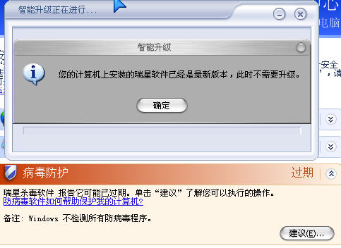 windows安全中心报病毒防护过期,升级瑞星却报已经是最新版本,不需要升级,请问这是怎么回事?