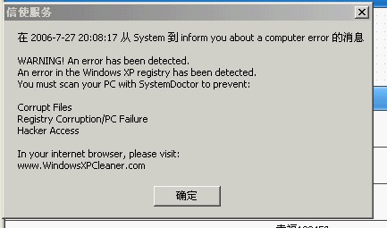 这几天一直弹对话框 说去registrysweeper.com才能消除 我去了后安装了他那个软件 结果还说必须交费才能取消对话框 真TM流氓 我用好几个软件查杀也没用 不知道是什么东西 那网站看起来不像是病毒网站 妈的烦死我了 这几天玩魔兽玩着玩着就被弹 真TM烦 哪位大哥梆梆我啊
