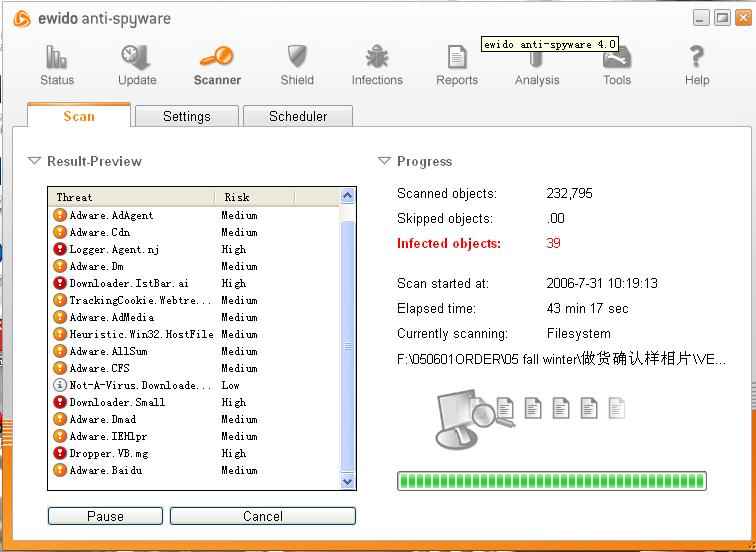 不知道为什么,用瑞星扫完之后再用EWIDO扫,居然出了39个病毒?