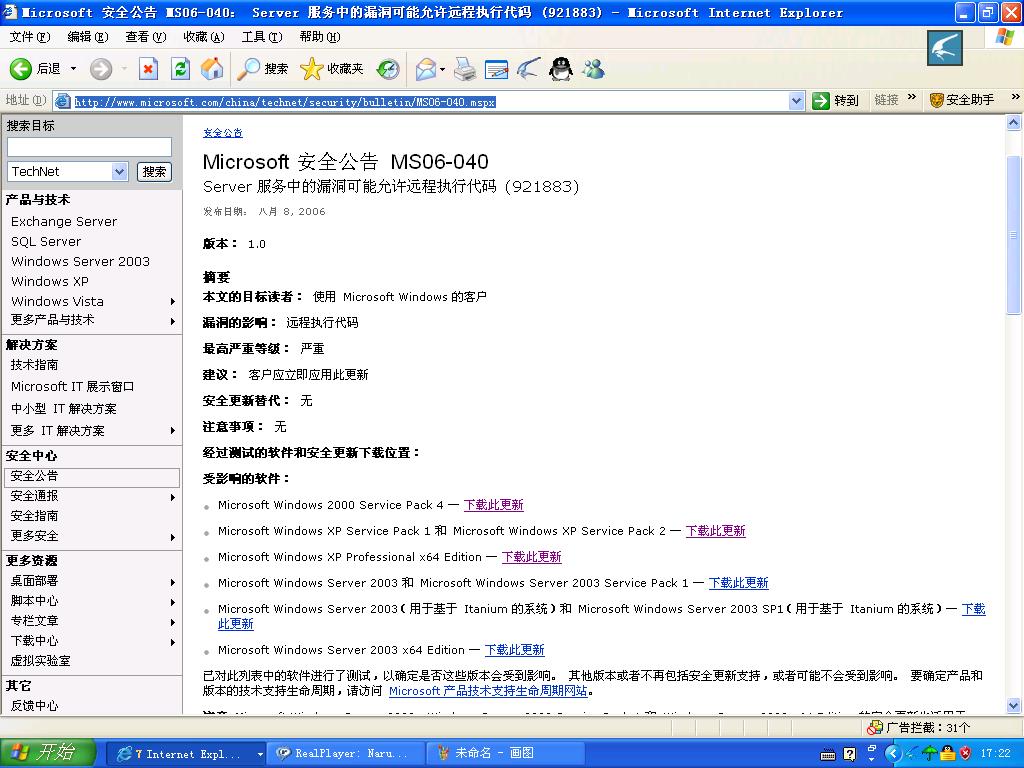 http://www.microsoft.com/china/technet/security/bulletin/MS06-040.mspx