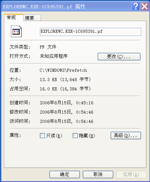 查看了EXPLOREWC.EXE-1C695391.pf的属性如图: