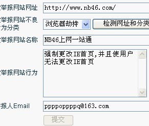 4.在瑞星上报流氓网站的时候,所有信息都填写完整无误,但是"提交"键却不可用