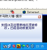 打开任何程序和IE、或资源管理器,Windows木马防火墙就提示IE和注册表被修改