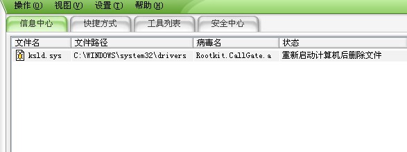 终于~终于看到前几天发现的病毒上了排行榜了~ Rootkit.CallGate.a