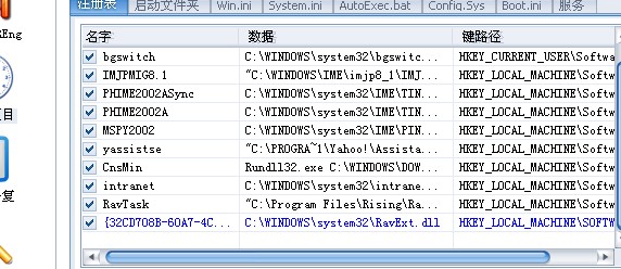 所有的启动项目(包括注册表、启动文件夹、服务等)