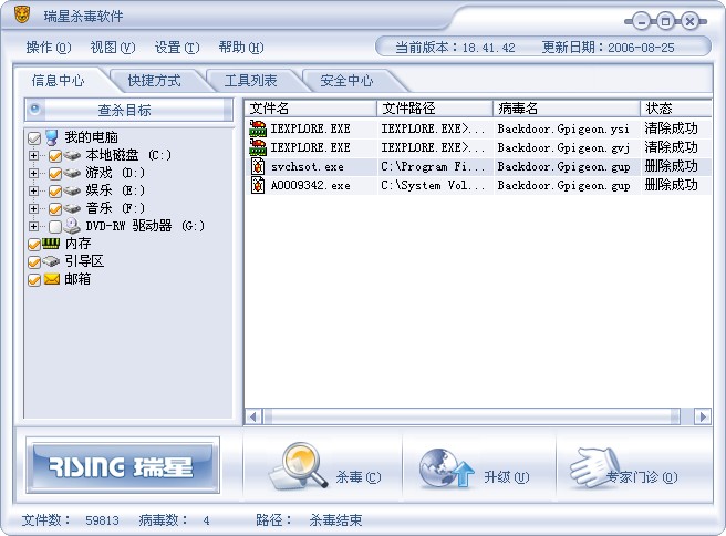 瑞星卡卡安全论坛技术交流区反病毒/反流氓软件论坛 Backdoor.Gpigeon.ysi Backdoor.Gpigeon.gup这两个毒我杀了N次也杀不掉