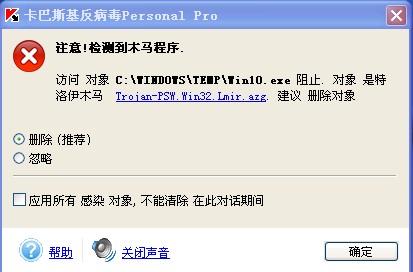 Trojan.PSW.LMir.atc根本删除不掉,瑞星监控中心一直在弹出对话框,发现病毒