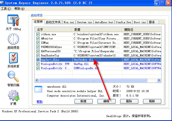 就是用SREng啊 点删除的时候它说是系统关键项 删除不掉