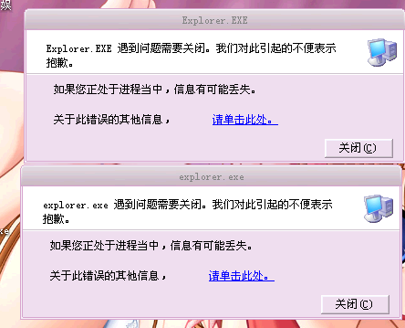 昨天晚上还好好的``也米下什么东西``今天起来开机``升级完杀毒``在杀毒的时候``出现注删表修改```但不能手动改``自己默认``而且还无限的出``过了一会儿就出现如下对话框```点关闭``机子就不动了```只好关机重启```接着杀``杀了一会儿又出```只要点关闭``过小会儿就会死机````我现在不再点它``就能使用机子```用兔子修IE```注删表还是自己默认全都拒绝修改```无法手动选择````请哪位帮忙看看到底怎么回事~~`谢谢了~~