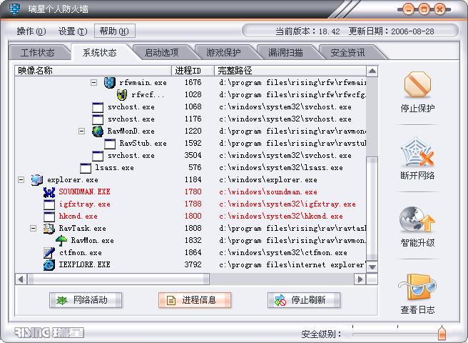 瑞星防火墙红色进程代表什么?(有图)