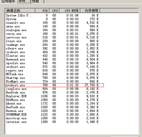 重装系统后svshost在开机后十几分钟内一直占有CPU近100%,然后会慢慢恢复正常,但在使用过程中,会突然性变成占有率100%