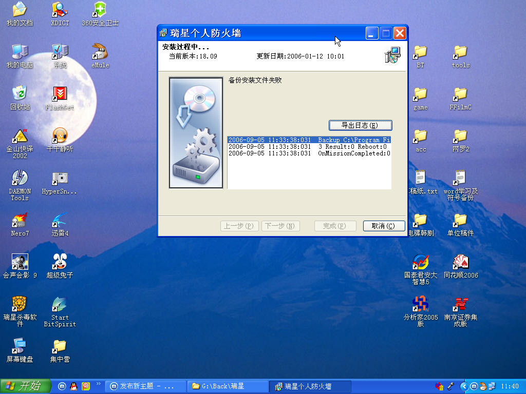并且重新安装正版的瑞星防火墙也不能安装,安装进行到最后有如下提示