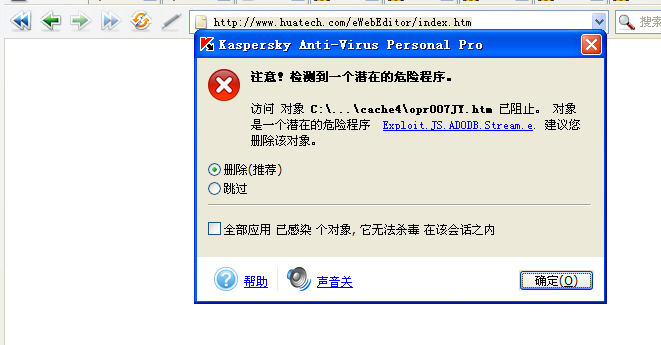 那个网页上有个脚本病毒,在浏览器的临时文件夹中。关闭浏览器,清空浏览器临时文件夹即可。