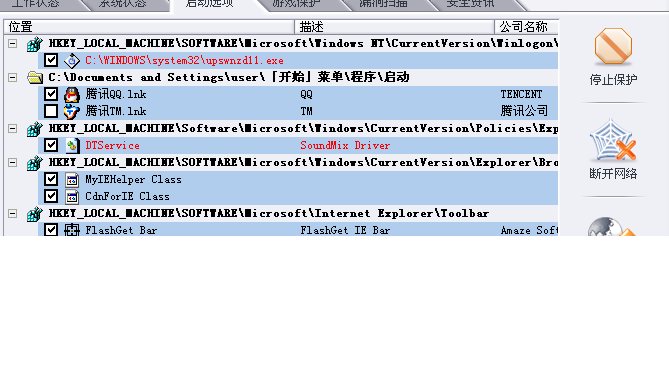 打开System Repair Engineer(也就是你的扫描日志软件SREng.exe),使用“启动项目,注册表”来删除以下选项