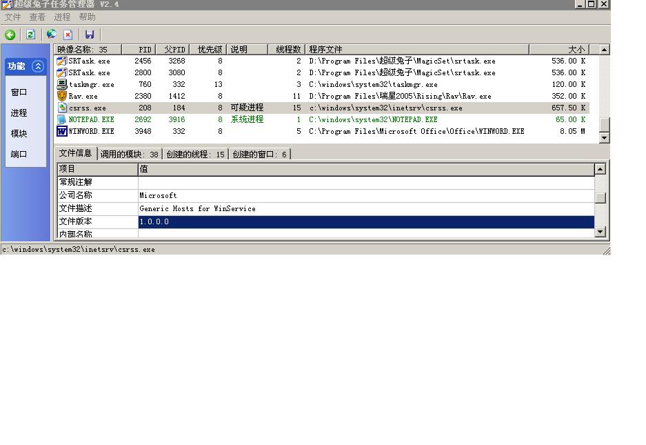 使用超级兔子检查进程依然显示存在可疑进程;
